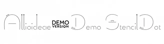 A modern stencil font with dotted embellishments and geometric shapes.